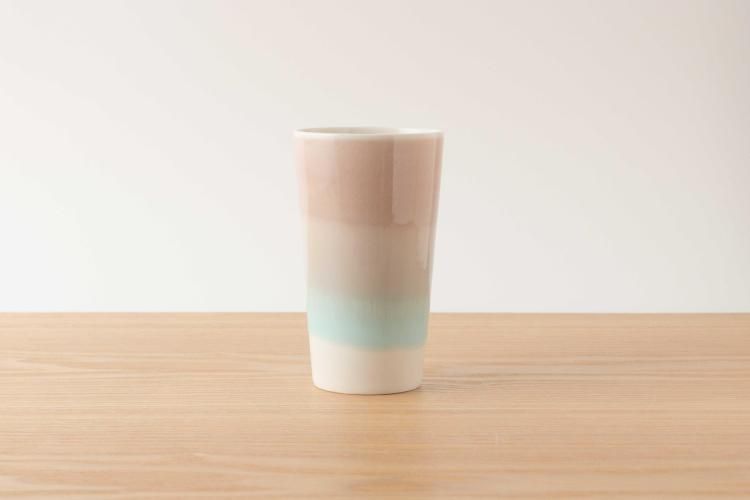 海に沈む夕日をイメージさせる釉薬のグラデーションが特徴のタンブラー。
