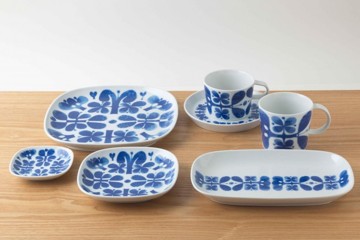 スウェーデンの陶芸家 スティグ・リンドベリが1960年代にメラミン食器としてデザインした青い花柄《Blues》をもとに製作した磁器のプレートです。
